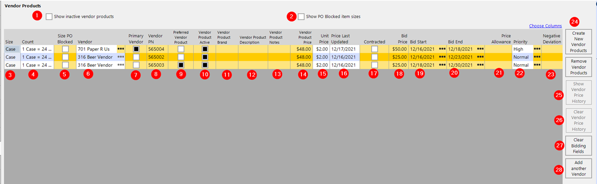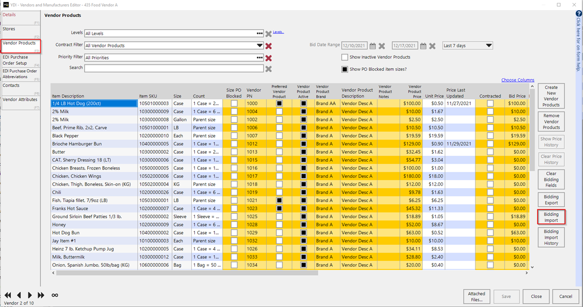 Vendor Products tab within the vendor editor and select Bidding Import on the