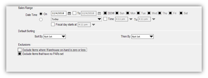 When creating a new Replenishment WS, this filter will look at all the items in the chosen level(s) and only bring the items with PARS already set.