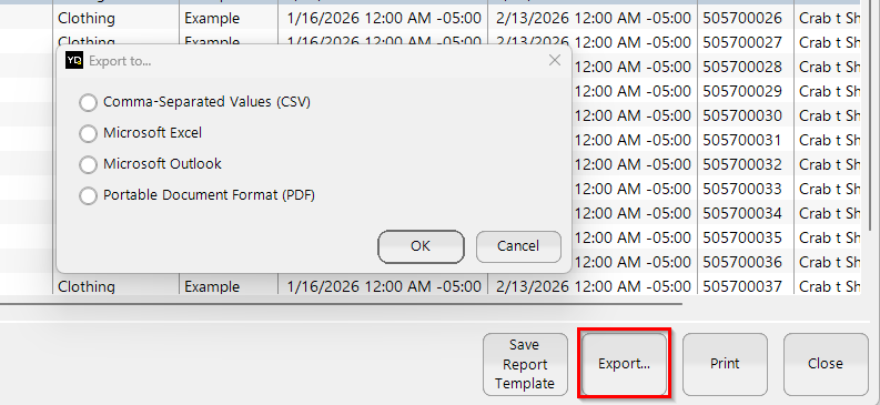 - Excel: Select Formatted Data (recommended) instead of Raw Data. This ensures that the export includes only the selected columns and preserves the report’s sorting and grouping as shown in Yellow Dog.