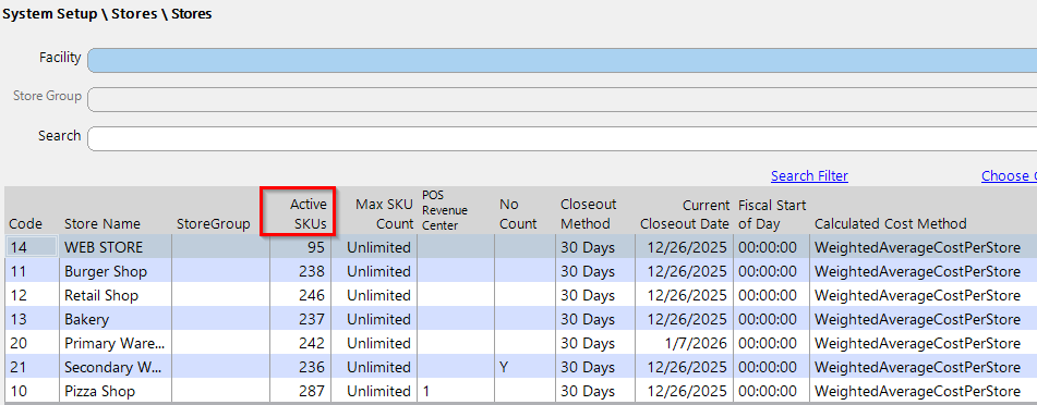 Figure: Example of where to find the number of SKUs assigned to a store