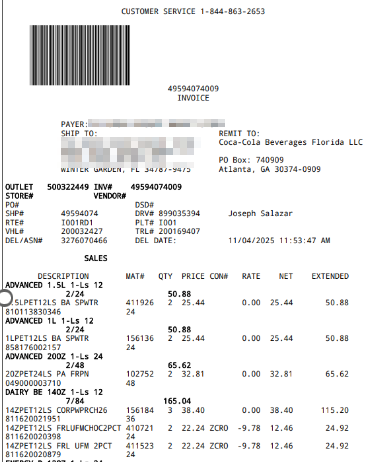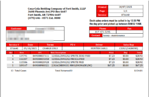 Yes. Coca-Cola invoices often use inconsistent formats, which makes it difficult for Retriever to capture information accurately. To improve data accuracy in Invoice Staging, request that the vendor provide invoices in a single, consistent format.