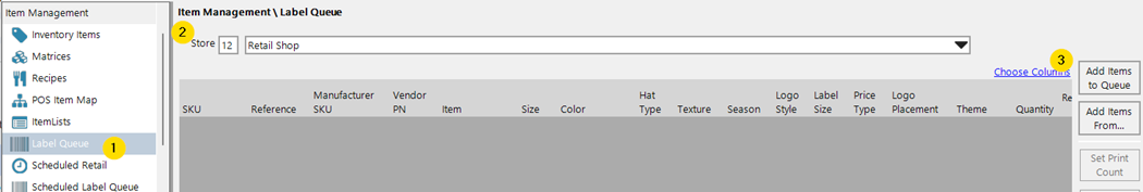 You can choose to print labels item by item or add them all to a label queue and print them all at once. To print your items individually, you can highlight your item and select the button print label: | Select the store that you are printing labels ...