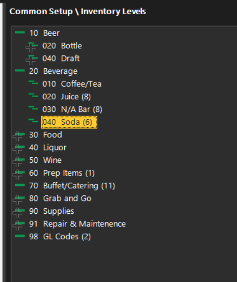 Figure 1. Every level requires a unique level code. When creating a new level, it’s important to determine the correct code to assign. For example, in the screenshot above, if we were adding a new level under Beverage, the next available code would be 50, which should be used for the new level.