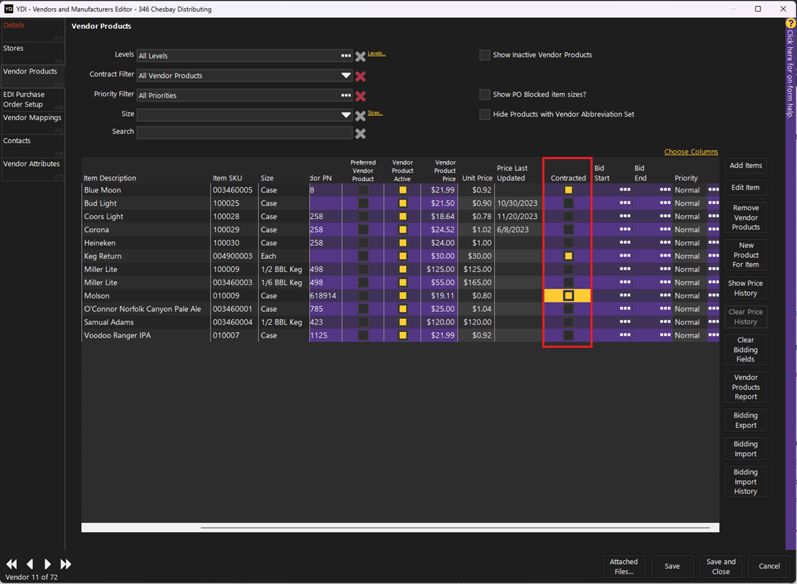 Figure 2. Selecting the box under the Contracted column indicated that the Vendor Product Price is contracted.