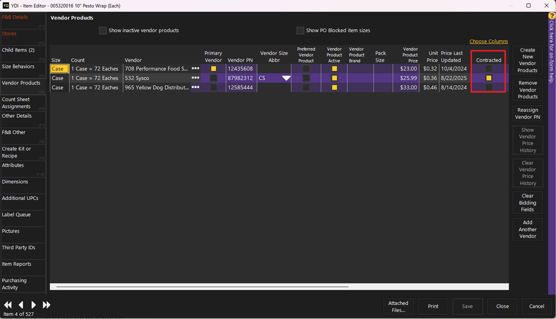 - Select the Contracted box for any Vendor Products that have contracted pricing.