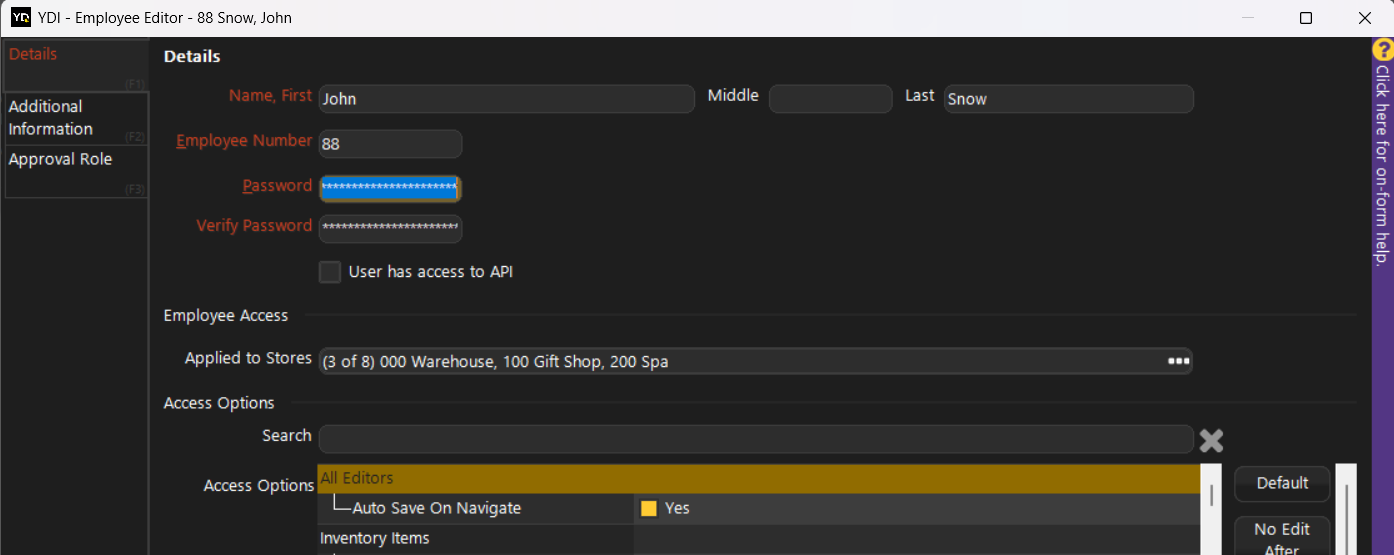 Employee creation and management is completed under System Setup > Employees. This section is divided into four parts: Employees Employee Groups Employee Options Employee Roles Employees The Employees section is essential for defining who can access ...