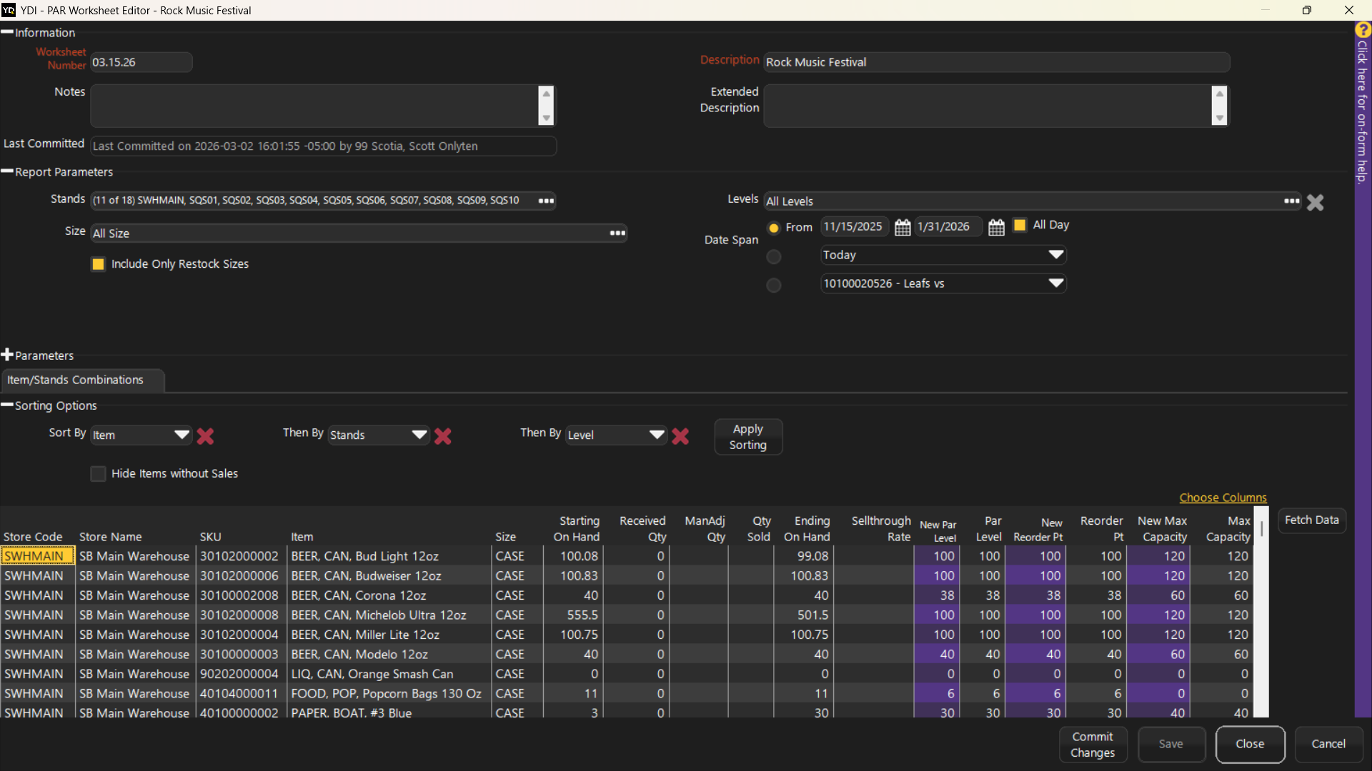 The PAR Worksheet provides a fast, repeatable way to mass update PAR levels using actual sales data from a selected date range or event.