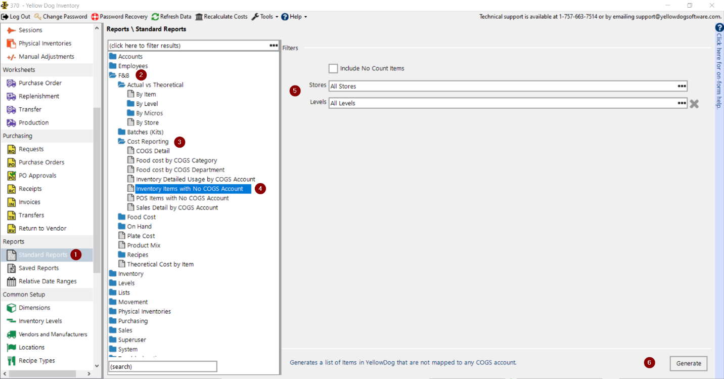 Business Need: This report is helpful for F&B customers using COGS for tracking inventory. It allows clients to see which inventory items are not mapped to a COGS account. This is useful for troubleshooting variances in COGS cost reporting and locating inventory items missed in mapping. For more information on setting up COGS please see What are COGS?