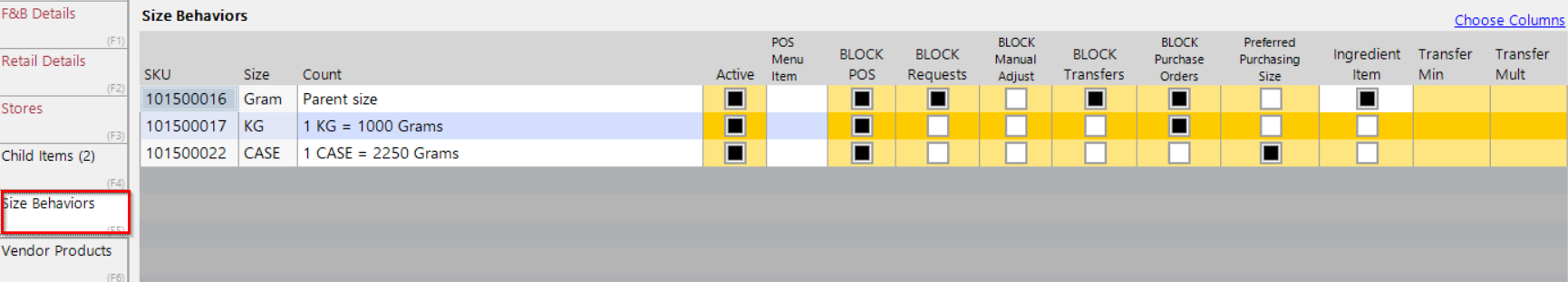Confirm that the item is enabled for Transfers on the Size Behaviors tab.