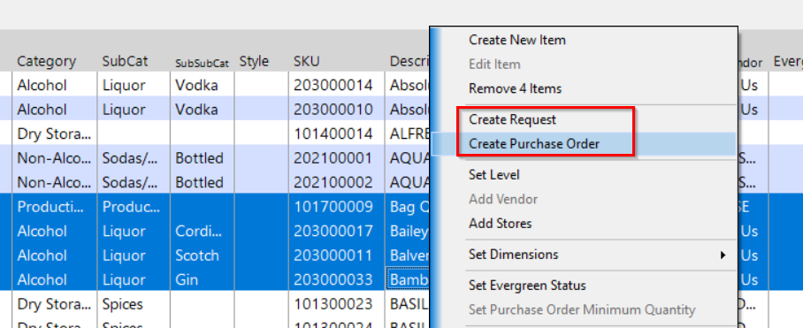 Quick Reference: Creating Requests & Purchase Orders from the Inventory Items Screen
