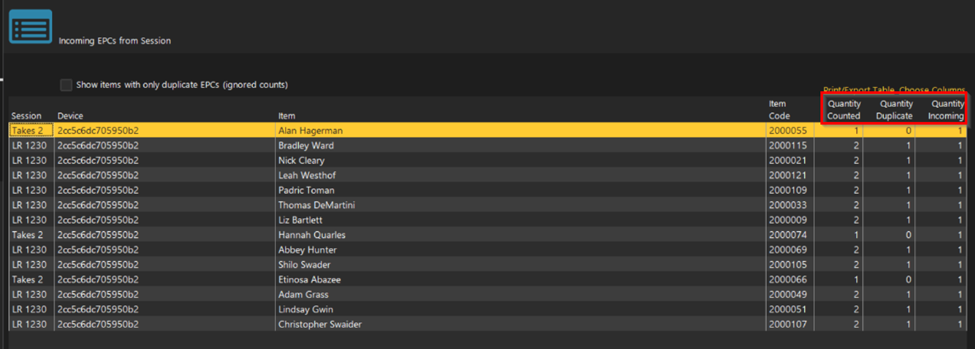 Dog reviews EPC codes across all selected sessions and removes duplicates.