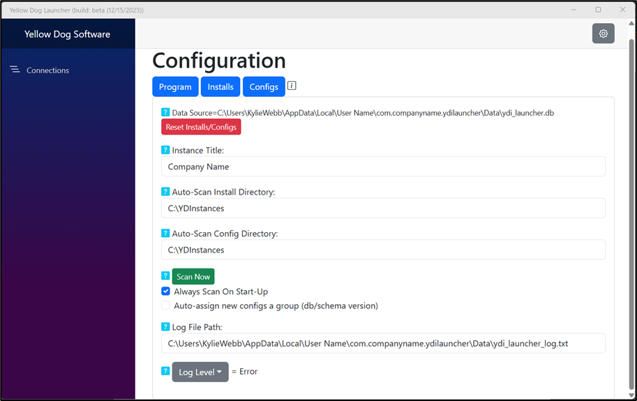 The technical name of the Yellow Dog Inventory instance. This is the database