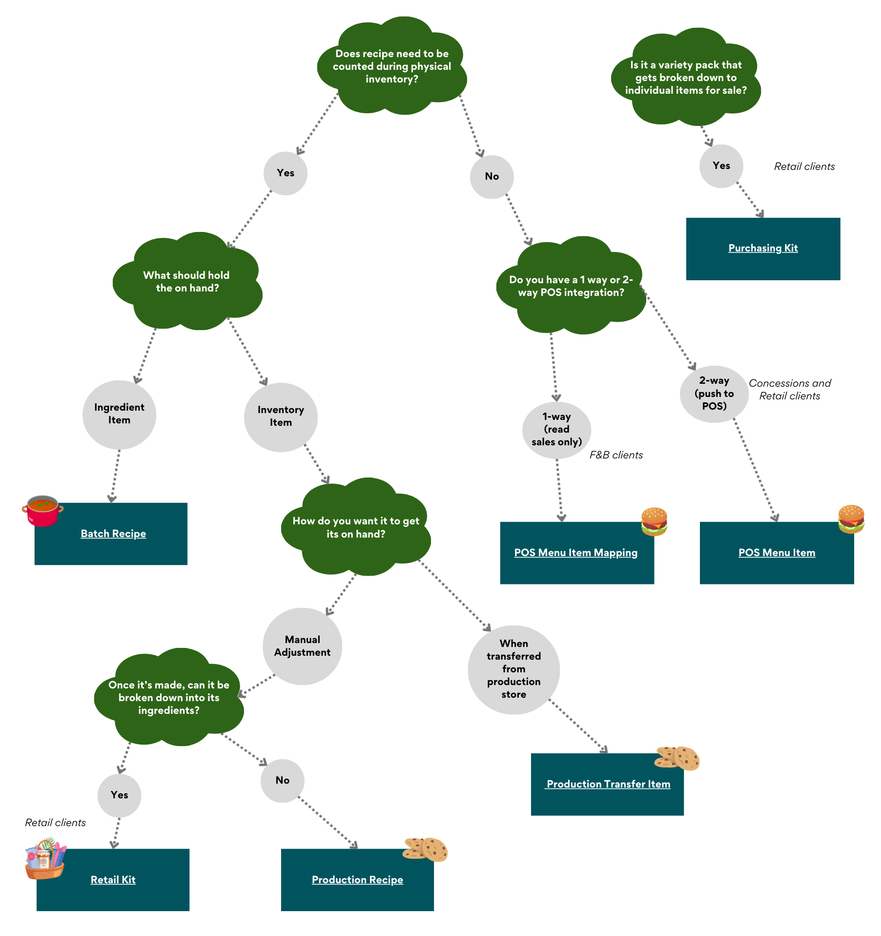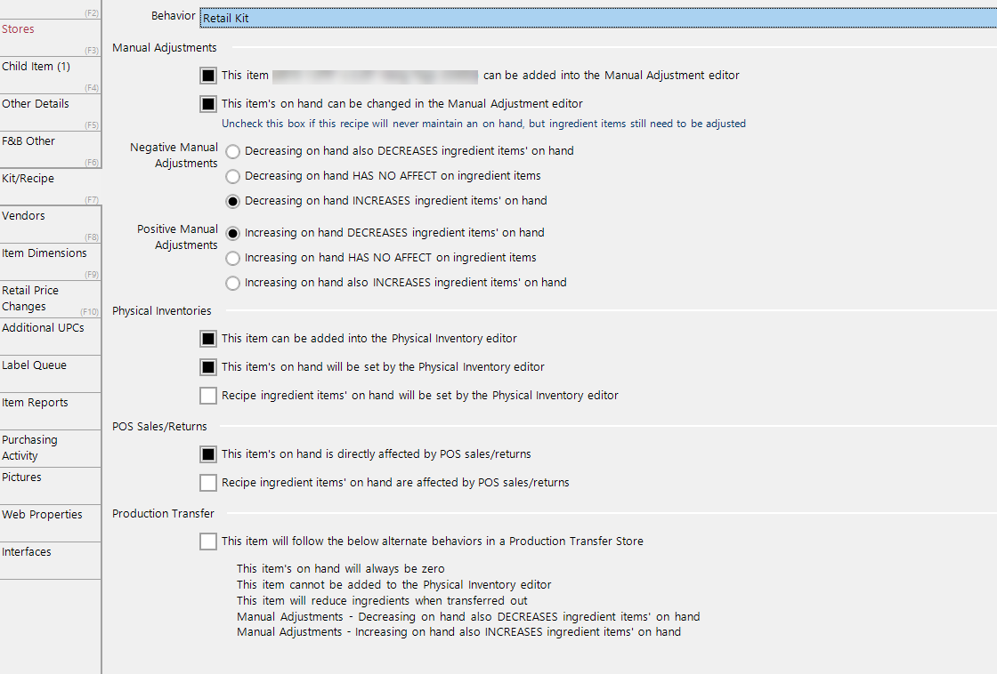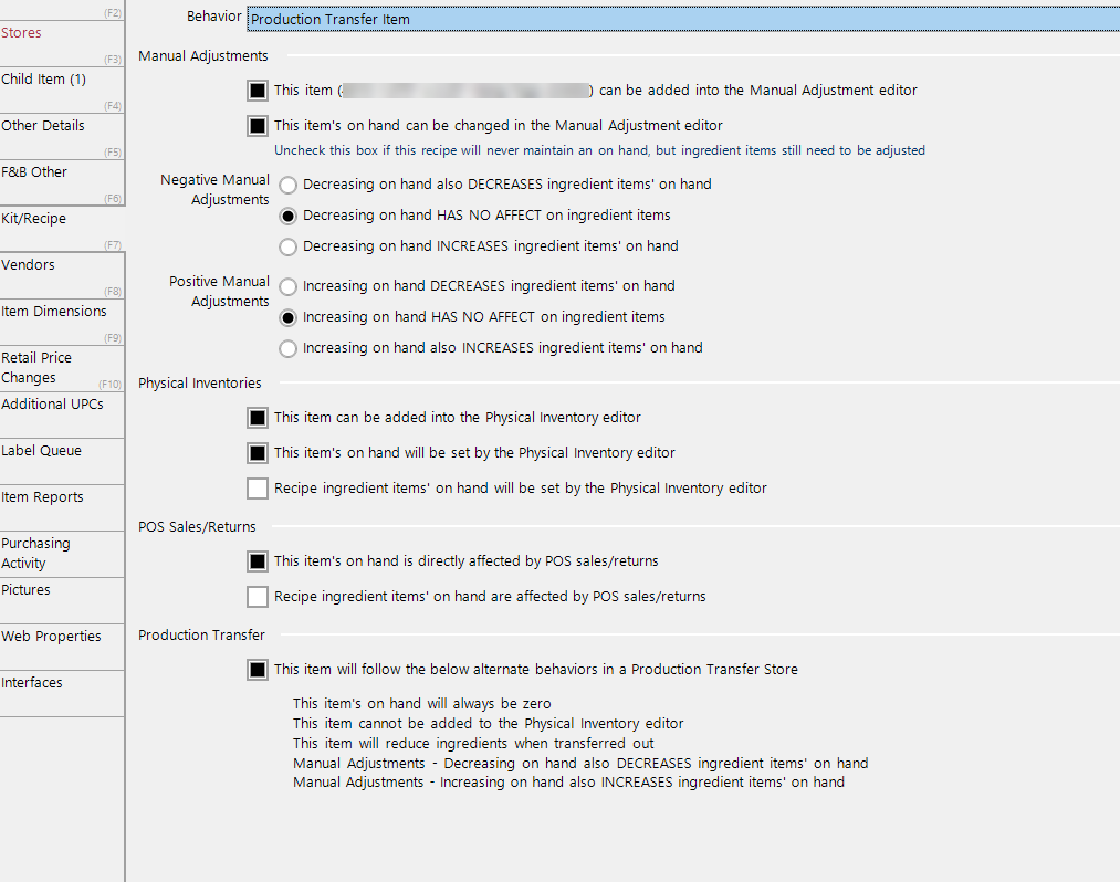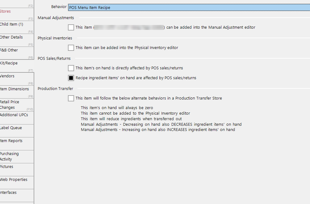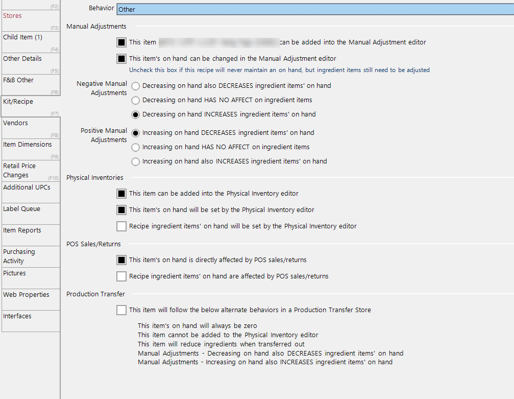 The purpose of creating production recipes items is so they can be counted in physical inventories and on-hands of the item can be tracked. Production recipe items behave in the following way: Will hold an on-hand. A manual adjustment is required ...