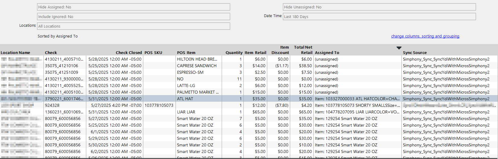 Include Ignored - Includes POS items that were intentionally marked as Ignored when mapping recipes. Use this option if you need to review all POS items, including those not tracked in Yellow Dog.