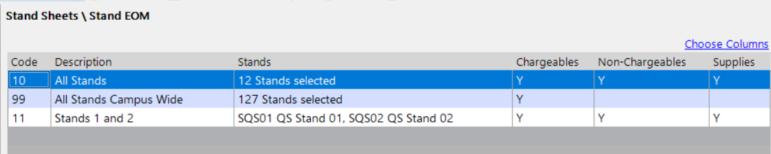 Go to Stand Sheets > Stand EOM.