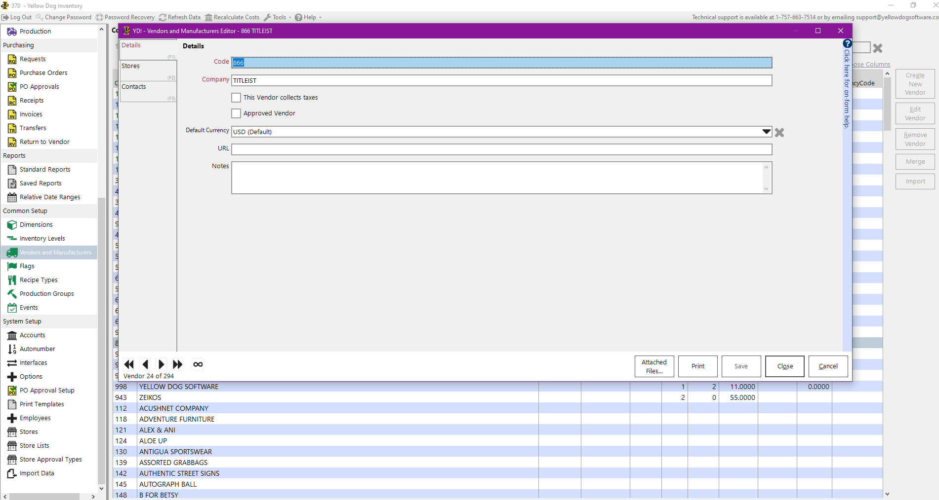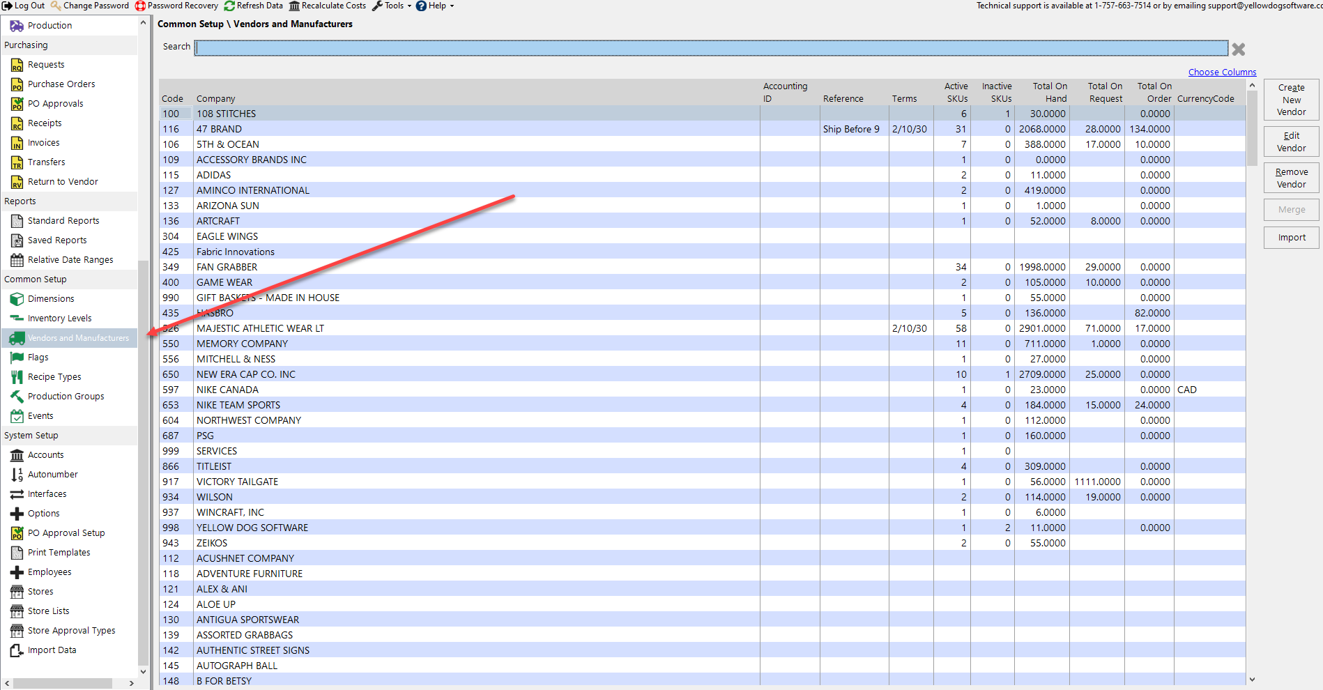 - Log into Yellow Dog and Navigate to Common Setup and select Vendors & Manufacturers.
