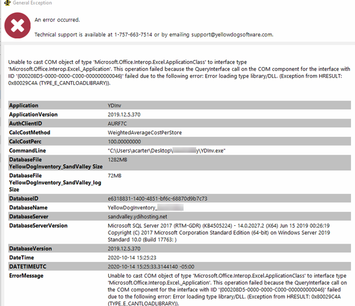 Issue: When exporting to Excel an error occurs. “Unable to cast COM object type”: